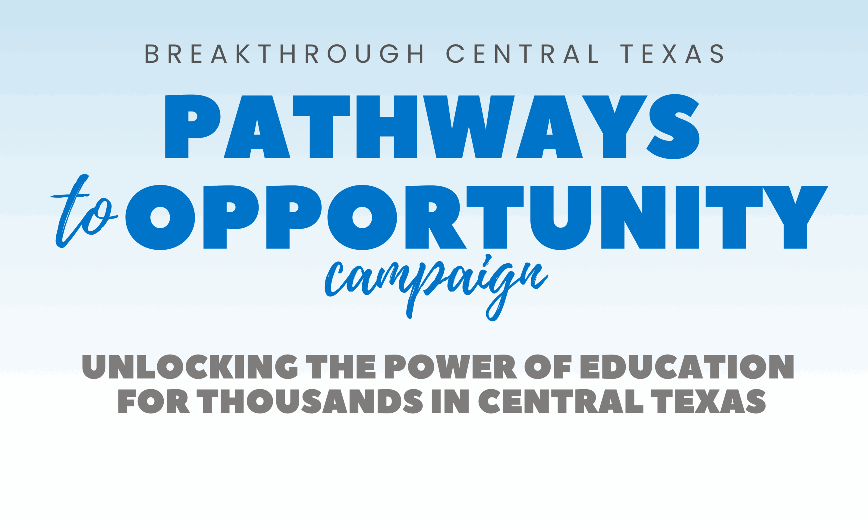 Now is the moment to carry this momentum forward. More than a fundraising effort, this campaign is an investment in the future of our students, our workforce, and our community. I invite you to learn more about the Pathways to Opportunity Campaign, celebrate the generosity that has brought us this far, and consider how you can help unlock the power of education and a lifetime of opportunity for thousands more students. Together, we can help make our region one of the best in the state for young people to realize college and career success —building a stronger Central Texas for all.